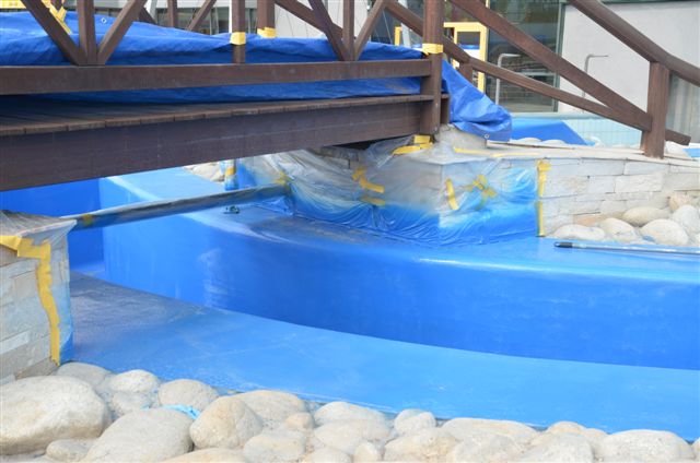 The conditions and favorable points that decided the execution of our continuous polyurethane membrane continuous waterproofing system Tecnocoat P-2049, in this waterproofing of swimming pools and recreational areas, were the following:
